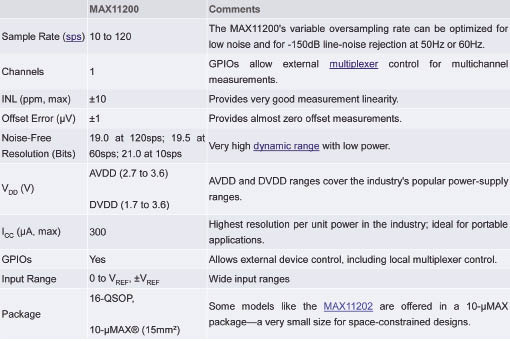 表3所示为MAX11200的基本性能指标,具有图4中所示的电路特性。