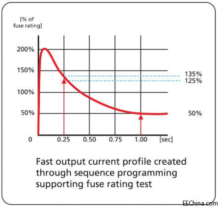 图9:通过顺序编程创建的快速输出电流曲线支持熔丝额定值测试。