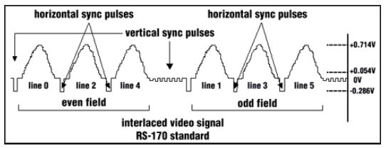 模拟视频信号包含控制扫描从左到右逐行以及从上到下逐场进行扫描。控制逐行扫描的脉冲称为水平同步脉冲(H-Sync)。控制垂直扫描的脉冲称为垂直同步脉冲(V-Sync)。