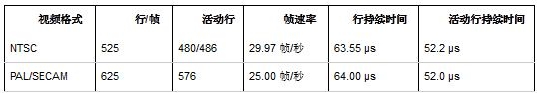 以下表格描述了常用标准模拟视频格式的一些特征: