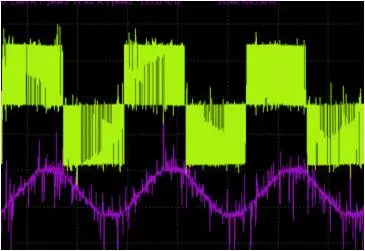 同样,对变频器的输出侧,电压是频率可调的载波信号,含有较多的高次谐波,如下图: