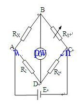 电阻R1,R2,R3,R4叫做电桥的四个臂,G为检流计,用以检查它所在的支路有无电流。当G无电流通过时,称电桥达到平衡。平衡时,四个臂的阻值 满足一个简单的关系,利用这一关系就可测量电阻。平衡时,检流计所在支路电流为零,则有,(1)流过R1和R3的电流相同(记作I1),流过R2和R4的 电流相同(记作I2)。(2)B,D两点电位相等,即UB=UD。因而有 I1R1=I2R2;个阻值已知,便可求得第四个电阻。测量时,选择适当的电阻作为R1和R2,用一个可变电阻作为R3,令被测电阻充当R4,调节R3使 电桥平衡,电阻而且可利用高灵敏度的检流计来测零,故用电桥测电阻比用欧姆表分条件。电桥不平衡时,G的电流IG与R1,R2,R3,R4有关。利用这一 关系也可根据IG及三个臂的电阻值求得第四个臂的阻值,因此不平衡电桥原则上也可测量电阻。