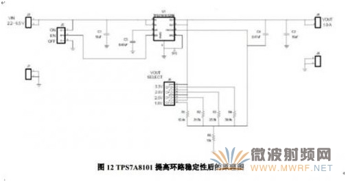 第一章中我们已经讨论了LDO加一个前馈电容可以有效的提高电源的环路稳定性,从而降低LDO的输出噪声频谱密度。基于此,我们在TPS7A8101输出加一个0.47 ?F的前馈电容,修改后的原理图如下图12所示。