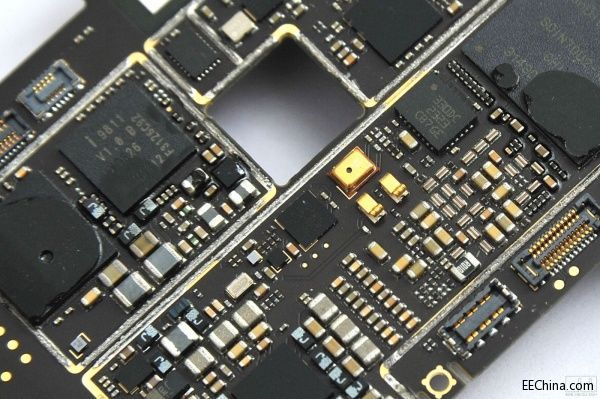 高下立见。虽然是0201,但是贴片之间几乎没有缝隙,这说明MX3虽然没有使用01005规格的零件,但是工艺需求却是01005级别的。那为啥不直接用01005呢?……估计是因为板子还挺大的,放得下吧……
