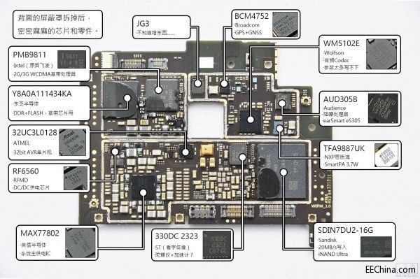 那么Sensor Hub到底是哪个芯片?各位看第二张芯片解析图,在中央麦克风左边的那片小小的芯片,型号为32UC3L0128A的,就是Sensor Hub的本尊。实际上,这是一颗来自ATMEL的32bit AVR单片机,做过嵌入式开发的应该都很熟悉。通过这颗芯片,MZ可以用一个低功耗的方式,获取并分析所有传感器得到的数据,让系统可以更好的判断自己所处的状态,甚至在休眠的时候也可以不断获取传感器信息,还不怎么耗电。为啥别人的Home不能唤醒系统,而MX3可以?就是因为有Sensor Hub存在。当然,MX2的Home有独立控制器,虽然实现了同样的功能,但是和MX3还是没法比的。