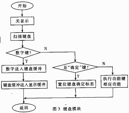 主程序检测到此标志位被置位后,启动键盘扫描模块实现键盘输入。键盘输入完成(用户按“确认”键),置位键盘输入确认标志(Message_Flag中的D7位)。