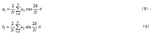 由7式可以看出只要求 和 ,就可以求出基波的最大值和有效值。同理可以求出其他高次谐波的相关值。将公式2和公式3离散化,则可以在程序中实现和 的计算。也就是
