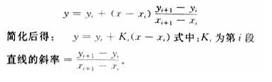 我们可以把该曲线按一定要求分成若干段,在此设分成n段,然后把相邻两段点之间的曲线用直线近似,这样可以利用线性方法求出输入值x所对应的输出值,这就是线性插值法。设输入值在(xi, xi+1)之间,则其对应的输出值y可由下式求得: