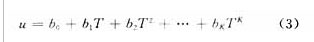 将b0,b1,b2,…,bK和计算上式的子程序送入内存,温度值T0,T1,…,TK-1和传感器对应的输出电压值u0,u1,…, uK-1按顺序分配方式存入内存,构成一个线性表,采集数据时,CPU按线性查找对应温度的电压值u,并按下式计算对应的被测物理量y: