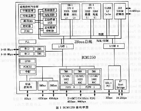 图1是BCM1250的内部结构框图。
