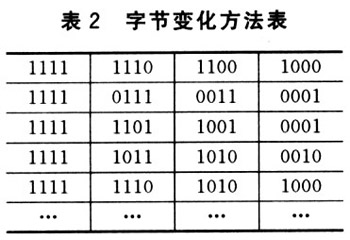 机器码E79C04的后两个字节代表了汇编程序语句中的地址(04代表了2600H,14代表了3600H……)。当一个字节从4位全是“1”变成4位全是“O”,且每次只有一个“l”变为“0”时,可以有多种不同的变法,如表2所列。