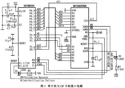电子存储设备的不断涌现,使许多便携设备大容量数据的实时处理和存储成为可能,CF卡( Compact Flash card)因具有容量大、体积小、性能优良、携带方便等优点,已广泛应用在数据采集系统和许多消费类电子产品中。然而目前所开发的产品成本高,电路复杂,所需元器件数目多,严重制约了CF卡在更广阔领域内的应用。本文给出了一种简洁实用的硬件接口电路.成功实现了单片机对CF卡标准文件的读写。