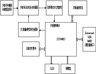针对上述各项要求,我们以S3C44B0微控器为核心,设计了一套布拉格光纤光栅传感信号处理系统。整个系统的硬件原理如图2所示。