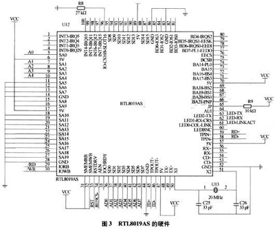 以太网模块实现与以太网的通信,采用RealTek的RTL8019芯片实现。