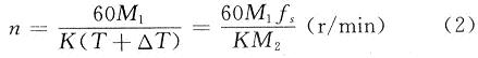 其中K为编码器旋转一周的脉冲数;fs为标准的时钟脉冲的频率。由式(1)可得,机组频率为: