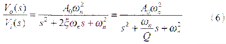 图3(a)所示,是二阶Butterworth低通滤波器(最平幅值滤波器)的一种实现电路,其传递函数为