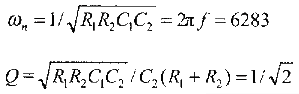 由于考虑到不可能找到与所计算的R、C值完全一致的电阻、电容值,而只能选取与实际的电阻、电容值最接近的值,故求解得到: C1 = 0.1 μF, C2=0.01 μF, R1=22 kΩ,R2=1 kΩ (7) 在这些参数下,实际的带宽是1074 Hz,Q值为0.645,与理想的二阶Butterworth低通滤波器有一定的误差。