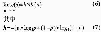 其中,b(n)是随机序列的渐进行为,可以用它来使c(n)归一化,称为“相对复杂度”。 定义相对复杂度: C(n)=c(n)/b(n)=[c(n)logn]/n (5) 通常就是用这个函数来表达时间序列的复杂性变化。从这种算法可以看出,完全随机的序列C(n)值趋向于1,而有规律的周期运动的C(n)值则趋向于0。 如果有一个随机序列,其中“1”的概率并非是0.5,那么它的复杂性就被认为是一个概率为P的随机序列的复杂性。由此可以表达为: