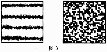 仅靠一个混沌防伪标记是无法达到防伪的目的,必须结合数字信息和混沌防伪标记来达到防伪的目的。具体说来,即可以直接将混沌图像的特征数据加密后,将加密后的数字信息以二维条码的形式打印在防伪标记旁边,组成一个完整的防伪标记(图3)。在真假鉴别过程中,用公开密钥解密混沌防伪标记上二维条码的数字信息,然后对照混沌防伪标记的特征数据。如果一样,则认为是真的防伪标记,否则则是假的防伪标记。
