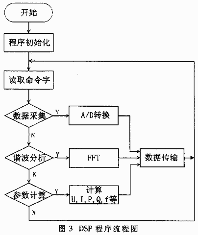 迭达收敛的速度取决于x初值的选取。初值x0越接近真值,收敛速度越快。政党情况下,电网的电压及电流尤其是电压变化范围不大,初值比较好选取。 由于单相电压电流采用同步采样,功率的计算比较准确。三相电路的有功功率及无功功率分别为它们的各相之和。电路为三相对称时,可采用单相功率的3倍作为总的三相功率。 TMS320F240与80C196的通讯采用双口RAM完成。在双口RAM中定义寄存器单元存放命令字DSP_MCU_CMD。DSP读取判断是否进行采样、是否进行FFT、是否计算有关电量。DSP完成指令后,将命令字相应位置1;80C196检测该位,从双口RAM中读取数据。