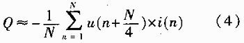 频率为6.4kHz。数据采集部分采用定时器1,数据长度为128点。这样,对于50Hz信号可保证采样为一个整周期。A/D转换设置为双A/D同步采术,如通道0与通道8采样时,设置A/D的代码为: LDP #224 SPLK #1001100100000000b,ADCTRL1 SPLK #0000000000000101b,ADCTRL2 谐波分析采用基2的128点快速速傅立叶变换,取前30次谐波数据传递给80C196。 程序中每一相的电压有效值、电流有效值、有功功率、无功功率使用下列各式计算(其中N=128)。 电压有效值: