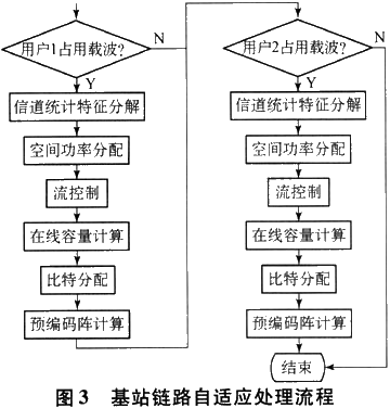 链路自适应处理都在基站侧完成,但是为了高效利用反馈链路,不可能直接把线性预编码阵反馈到移动台侧。而反馈信道发送自相关阵的增量,并在移动台侧恢复信道发送自相关阵后特征分解求线性预编码阵,可大大减小反馈的数据量,此方法有更大的优势。接收端自适应处理反映了详尽的自适应计算过程。