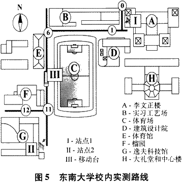 图5是实际外场测试路线及场景图。移动台首先静止在1号点,然后从1~12号点顺序遍历,在12号点掉头原路返回,最后在0号点停止。