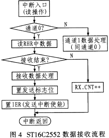 设ST16C2552处于被动响应通讯方式,初始设置为接收状态,接收上位机数据,判断处理后转为发送方式向上位机回复数据。