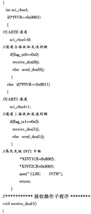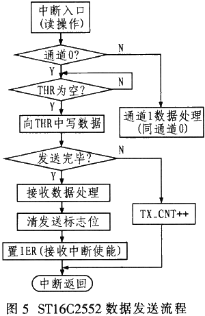 以通道1为例,系统中断发送、接收数据流程分别如图4、5所示,C语言程序如下: