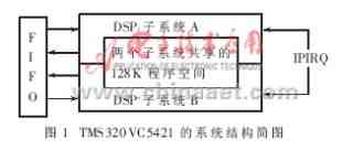 TMS320VC5421 16位定点双核DSP,它集中了早期TMS320C54X系列DSP的优点,并提供了许多新的功能。其内部结构与TMS320C54X系列的其它款式DSP有很大的不同,其简单结构框图如图1所示。