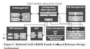 ARM926EJ-S 核心内建的记忆体管理单元(MMU)协助设计方案能够搭配像Embedded Linux 与WinCE等作业系统。Hellosoft的设计使用SIP与RTP通讯协定堆叠搭配VoiceOS(tm)架构。在参考设计方案中,这些与作业系统独立的通讯协定,运用开放原始码的嵌入型Linux核心进行建置,因此更能有效运用硬体资源,且能调针对不同的作业系统/即时作业系统环境调整基础架构,其中包括VxWorks与WinCE等作业系统。