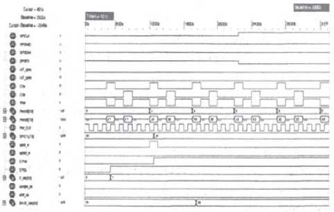 将上述Verilog代码编译,再写上对应测试代码进行验证。图5是寄存器的写操作的整体时序仿真波形图.验证了上述代码正确可行。