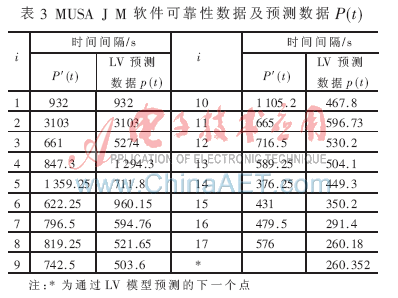 (1)使用Littlewood-Verall模型对P(t)进行运算,根据P(t)…P(t-1)求得预测的P′(t),结果如表3所示。