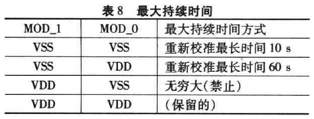 MOD可选引脚的逻辑组合设置超时延迟,如表8所列。