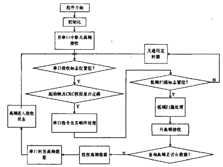 在低频扫描过程中要先使高频进入空闲状态。其他时间高频均处于接收状态。为防止与其他中断的冲突.在低频扫描之间要关全局中断,扫描完后开全局中断。