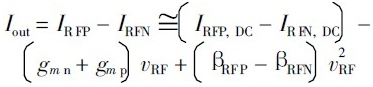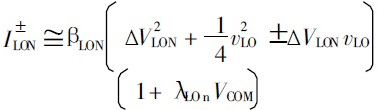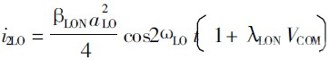 aLO是该信号的幅度,△VLON = VLO - VTN是MLON 1和MLON 2的过驱动电压。根据式( 3),流经电流复用电路和倍频电路的总电流ICR为ILON+ 、ILON- 的和,即得: