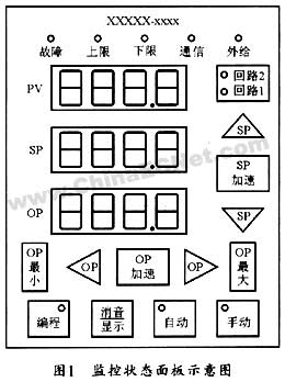 SHCAN2000系列智能仪表是大连交通大学三合仪表开发公司的产品,它由实时多任务操作系统、实时监控软件、任务级组态软件、实时数据库等构成,并由现场智能测控仪表软件组件集成技术来支持在线组态。SHCAN2000系列内嵌智能监控子程序。该监控子程序可使系统按照预定操作方式运转。以完成人机会话和远程控制.从而使系统按照操作者的意图或遥控命令来完成指定的作业。其人机会话的仪表面板界面如图1所示。