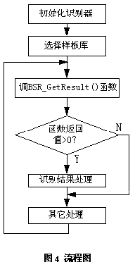 语音识别分为语音样板训练和语音识别两个过程。我们将标准模式的存储空间称之为“词库”,而把标准模式称之为“样板”。所谓语音样板训练,就是将待识别的命令进行频谱分析,提取特征参数作为识别的标准模式。语音识别的过程就是提取语音命令的特征参数,与词库中的样板比较,取相似度最好的样板命令序号作为识别结果。凌阳科技公司提供语音样板训练工具和语音识别库函数,每次可以识别30条语音命令,命令较多的话可以分多组进行,语音识别流程见图4所示: