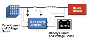 在另一个实例中,ST微电子开发了一个高度集成的HBLED太阳能MPPT充电器/驱动器。这个全集成的方案带有MPPT优化的电池充电器和集成的HBLED驱动器。这个产品将在2010年晚期发布,非常适合于HBLED街灯照明应用。