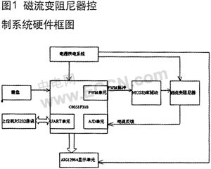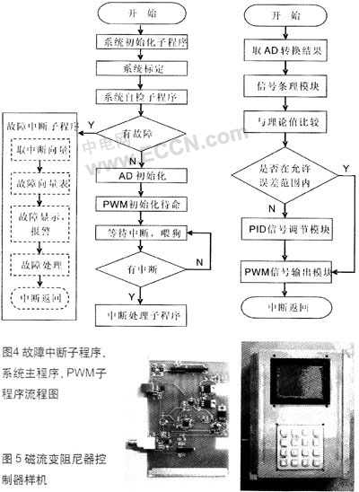 C8051F310的可编程计数器(PCA0)由一个专用的16位计数器/定时器和5个16位捕捉/比较模块组成。将捕捉/比较模块的工作方式设定为8位PWM,把PWM脉冲输出到MOS管功率驱动单元,从而控制磁流变阻尼器的电流值。将通过阻尼器的电流采样放大后,送入C8051F310的A/D单元中,经过A/D转换后由软件滤波得到电流量,并被传送给显示单元AXG12864 LED。将电流值与设定的电流值相比较得到的误差值,通过特殊的算法来调节PWM的脉宽,这样就形成了磁流变阻尼器电流的闭环控制系统。