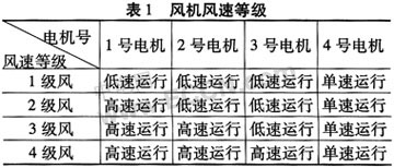 该综合保护器能对一台风机的4个驱动电机的缺相、短路、过载、漏电故障进行综合保护。风机共有两台,一台主风机,一台备用风机。风机风量等级共有4级,每台风机的风速等级由4台电机高、低速运行的不同组合控制,其中3台电机是双速电机,即高速和低速两种运行模式,另一台电机是单速电机。风速等级如表1所示。瓦斯浓度不同,则启动不同的风速等级。当电机发生故障或达到风机倒换时间,则启动备用风机。根据保护器的要求及其在井下工作的特点,本综合保护器实现的主要功能见图1。