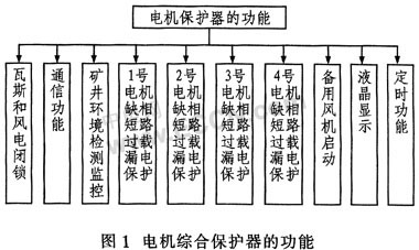 该综合保护器由两大模块组成:保护子模块和通信子模块。保护子模块主要是根据各传感器和外部检测装置输入单片机的信号进行处理、转换、显示以及驱动控制,实现相应功能,达到保护电动机和风机目的。通信子模块用于实现井下电机综合保护器与地面上位机通风监控系统的通信。