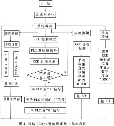 双路CCD高精度线纹测量实时监控系统的软件流程如图4所示。