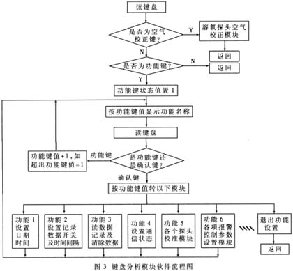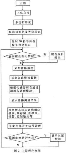 本监控仪的软件采用C语言与汇编语言混合编程。对时序要求较严的部分如DS1820、TLC2543、X84641等用汇编语言编写成相应的独立模块供主程序调用,主控程序、显示控制、键盘程序、各路数据的补偿运算等用C语言编写。由于C51支持浮点运算,在对各路数据进行补偿处理时,其精度得到保证。