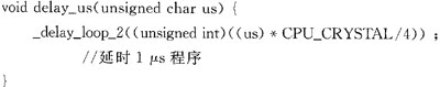 通过以上宏定义,可以实现SCK和DATA总线的各种输入和输出状态。为了模拟该二线串行数字协议,还需要一个延时函数。WINAVR库函数提供了一个延时函数_delay_loop_2(unsigned char s),该延时函数运行用4个时钟周期,所以自定义延时1 μs函数可以定义如下: