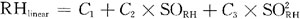 式中:RHlinear为经过线性补偿后的湿度值,SORH为相对湿度测量值,C1、C2、C3为线性补偿系数,取值如表2所列。
