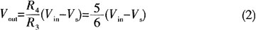 由于该电路中没有负压,电路的主体采用差分式减法电路,精密电阻R3=R6=2.4kΩ,R4=R7=2kΩ,用这四个电阻可调节增益。通过HM1500传感器测量所得到的湿度电压信号从IN端输入。差分的另一侧输入Vs。由TL431提供2.5 V的精密电压分压后可得到1.0 V左右的电压。并由此可以得到输出电压的计算公式为:
