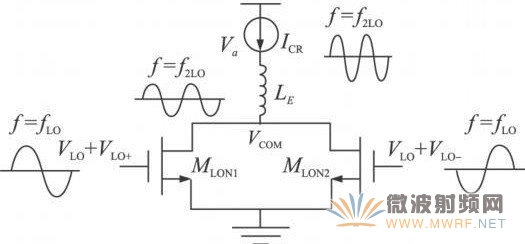 这与吉尔伯特混频器有所不同,对于吉尔伯特结构来说,增加LO功率只能使转换增益增加,但是线性度会恶化。所以在设计过程中,必须考虑使用适当的LO 功率和△VLO,电流复用对晶体管的尺寸和偏置要折中。我们可以设置偏置,使△VLO处于弱反型区来得到低功耗,同时从电流复用对上补偿线性度,并通过设置合适的LO功率得到适当的转换增益。