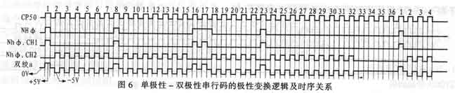 图6所示是单极性-双极型串行码的极性变换逻辑及时序关系。