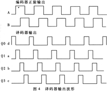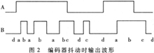 图5为抗抖动计数电路的输出波形。此电路计数频率可达10MHz。A相和B相输入前应予整形,必要时还要进行光电隔离。